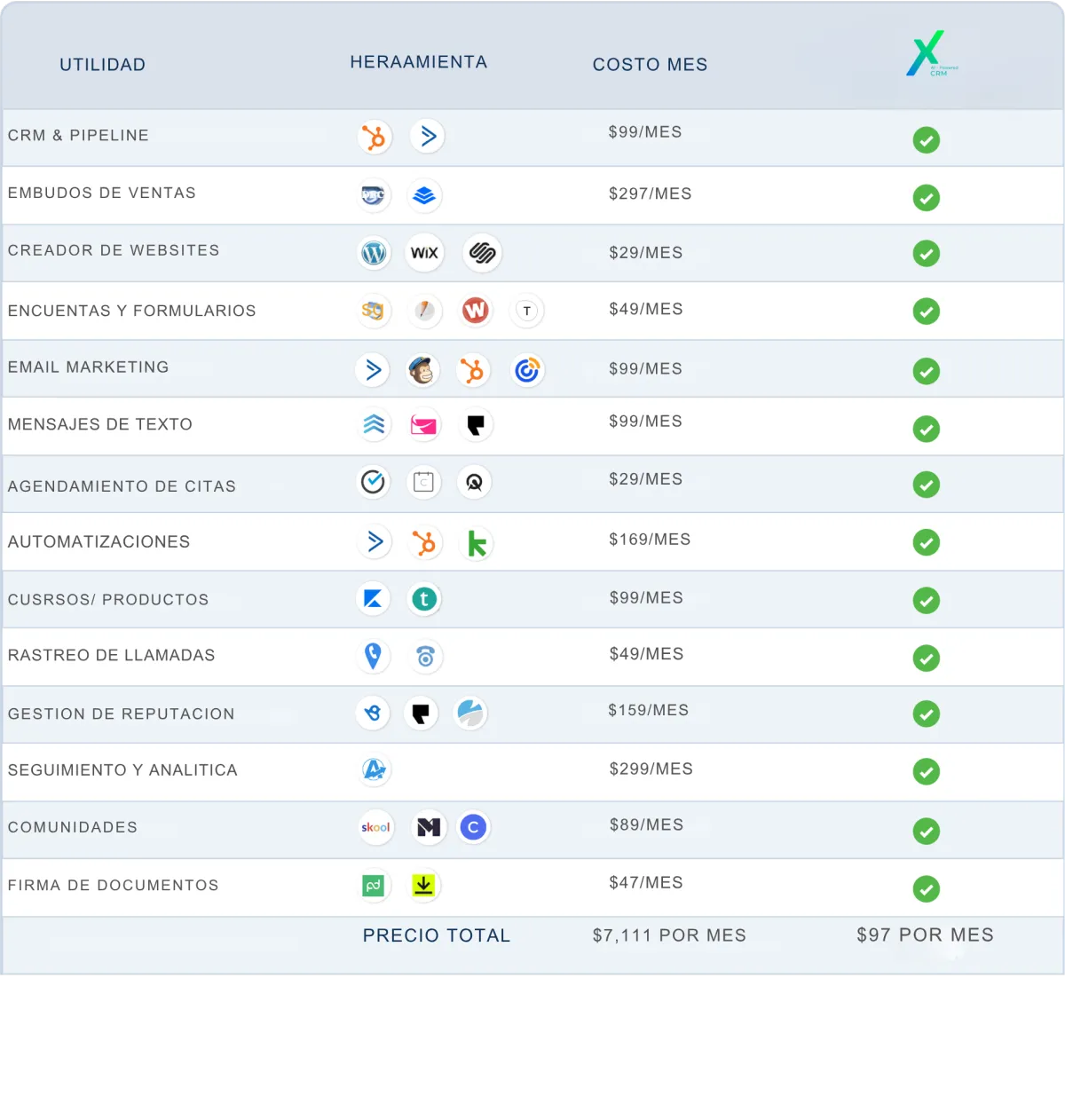 ✓ Integración de SMS, Facebook, Instagram, Google My Business y Email